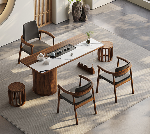 材質(zhì):面板30mm實(shí)木圓角邊緣設(shè)計(jì);多層實(shí)木貼木皮;一體式烏金石茶盤;天然加厚南美胡桃木腳架,大自然的獨(dú)特的美感,天然質(zhì)感保留木紋觸感;全自動智能抽水茶藝爐。所有基材均達(dá)到國家環(huán)保(國家檢測E1級標(biāo)準(zhǔn))要求,甲醛含量達(dá)歐洲免檢產(chǎn)品標(biāo)準(zhǔn);五金配件經(jīng)過防腐防銹處理。