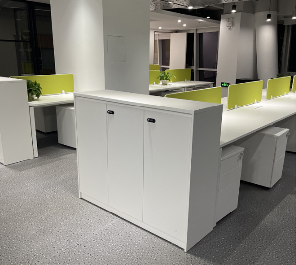 材質(zhì):1.采用E1級(jí)綠色環(huán)保三聚氫胺紙飾面,抗硬度性能好、具防刮、耐磨、防污、防損、防酸堿、耐火等特點(diǎn);內(nèi)部基材為E1級(jí)優(yōu)質(zhì)實(shí)木顆粒板,握釘力強(qiáng)、板材經(jīng)防蟲防腐處理、比重合理。板材臺(tái)面厚度為25mm,所有基材均達(dá)到國(guó)家環(huán)保標(biāo)準(zhǔn),物理、化學(xué)性能指標(biāo)均達(dá)到國(guó)際相關(guān)標(biāo)準(zhǔn)。2.封邊用材;采用PVC封邊條,熱熔膠封邊,封邊嚴(yán)密、平整,與整塊板材嚴(yán)絲合縫,不脫膠、表面無(wú)膠漬。3.五金配件:采用優(yōu)質(zhì)五金配件,所有五金件作防銹、防腐處理。4. 配置優(yōu)質(zhì)鋼制臺(tái)架,表面經(jīng)過(guò)氧化工藝處理后,采用半亞光粉體涂料靜電噴涂,耐磨、抗酸堿、防銹能力強(qiáng) 、環(huán)保耐用,主體不易變形。